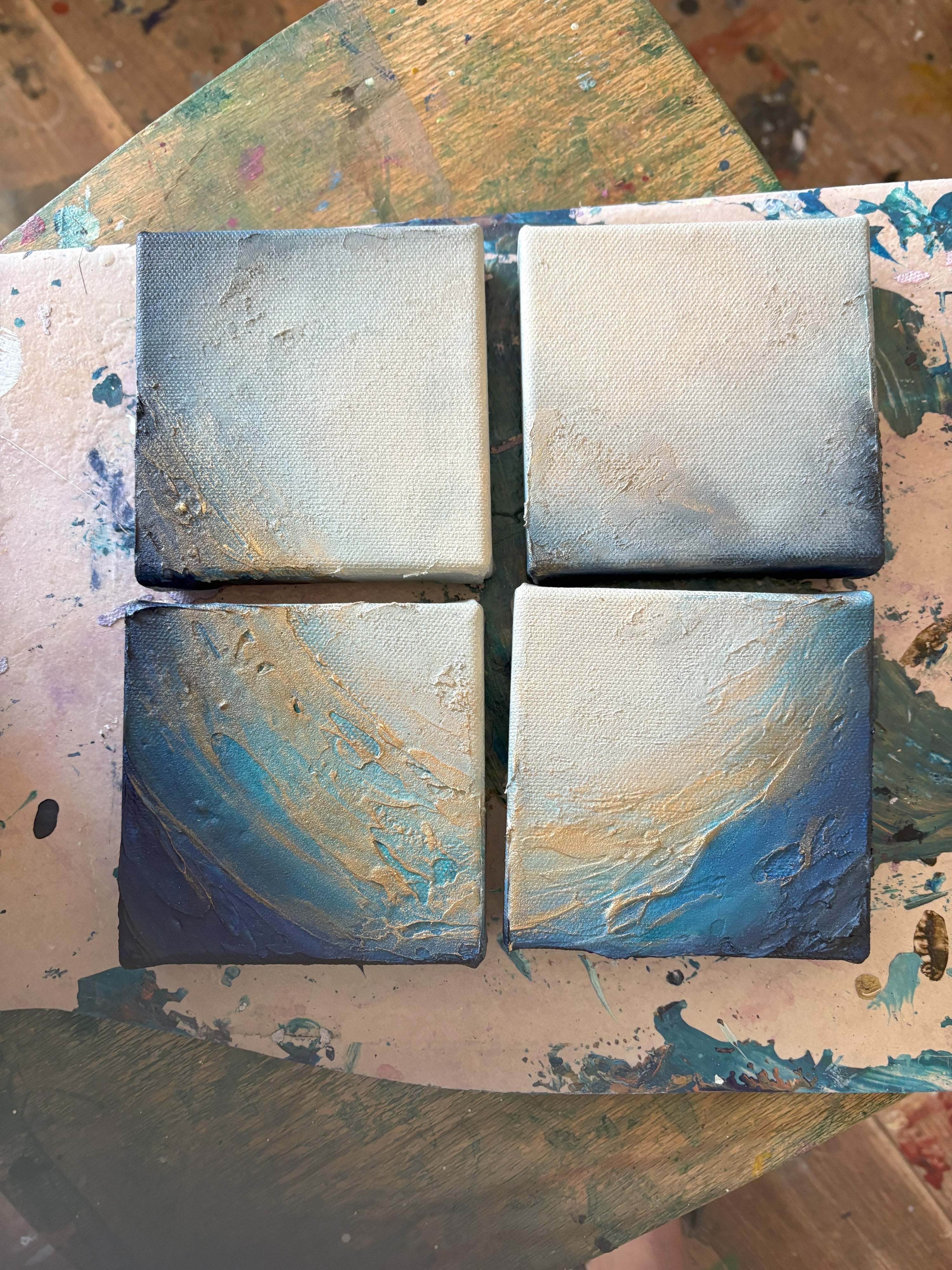 Her textural landscapes hover between realistic and abstract. Some are more clearly defined while others are far more vague. Both invite you to explore the image through the lens of your own experiences and emotions.